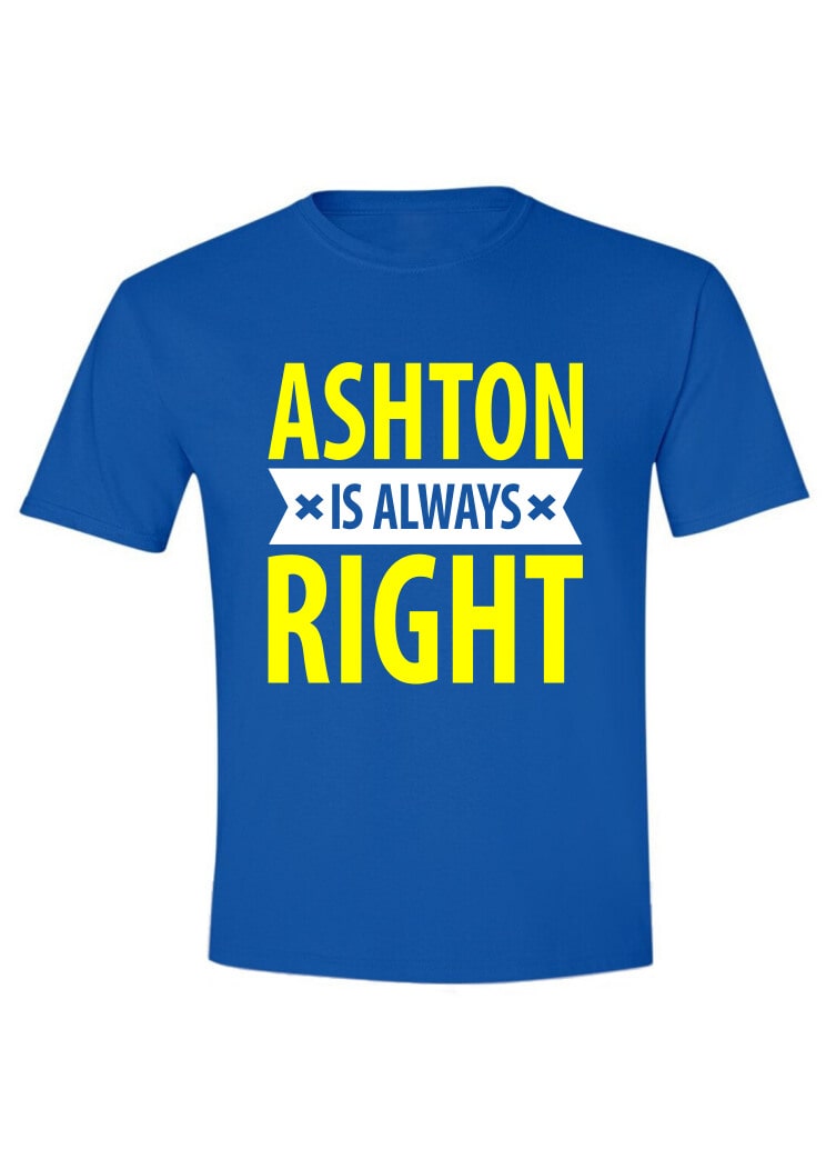 - 100% pre-shrunk cotton high-quality t-shirt “Ashton is always right”