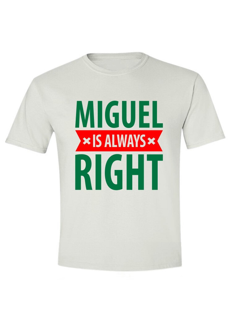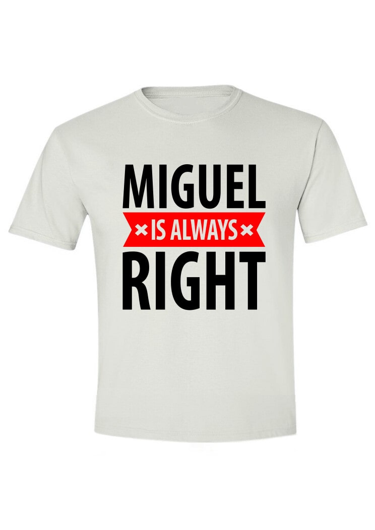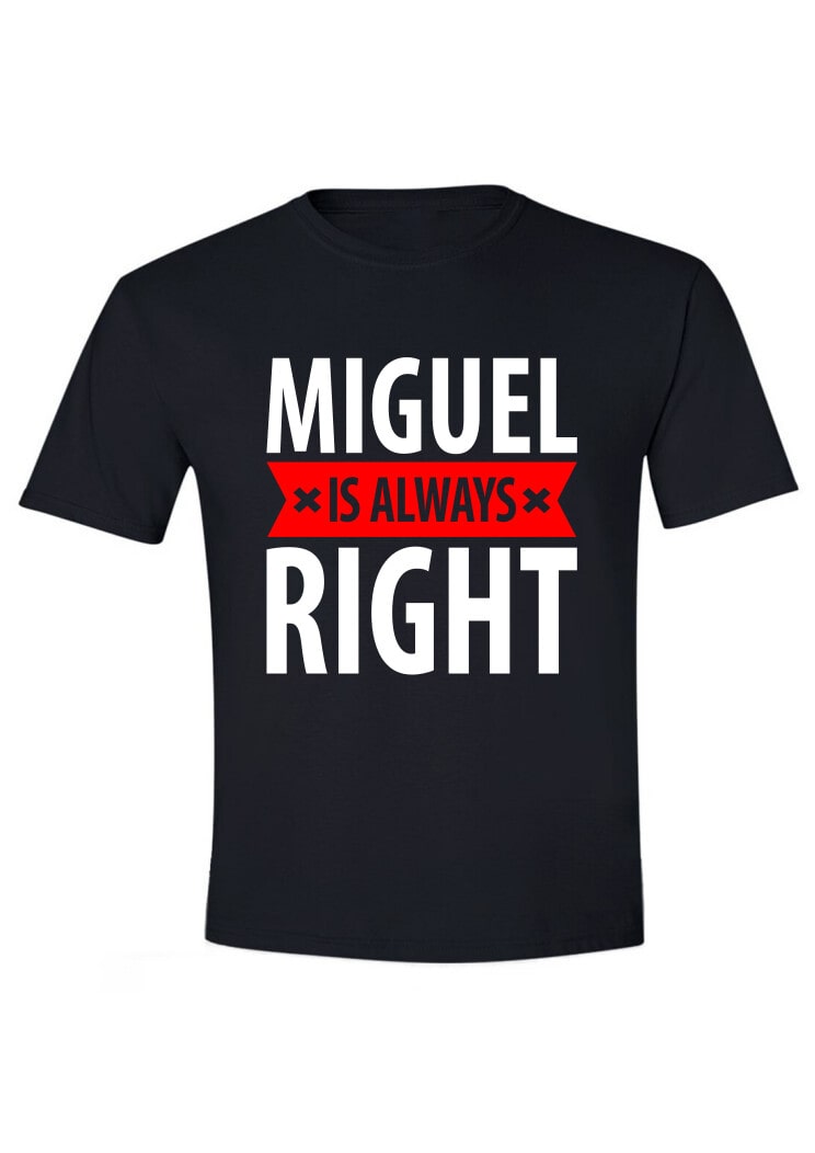 - 100% pre-shrunk cotton high-quality t-shirt “Miguel is always right”